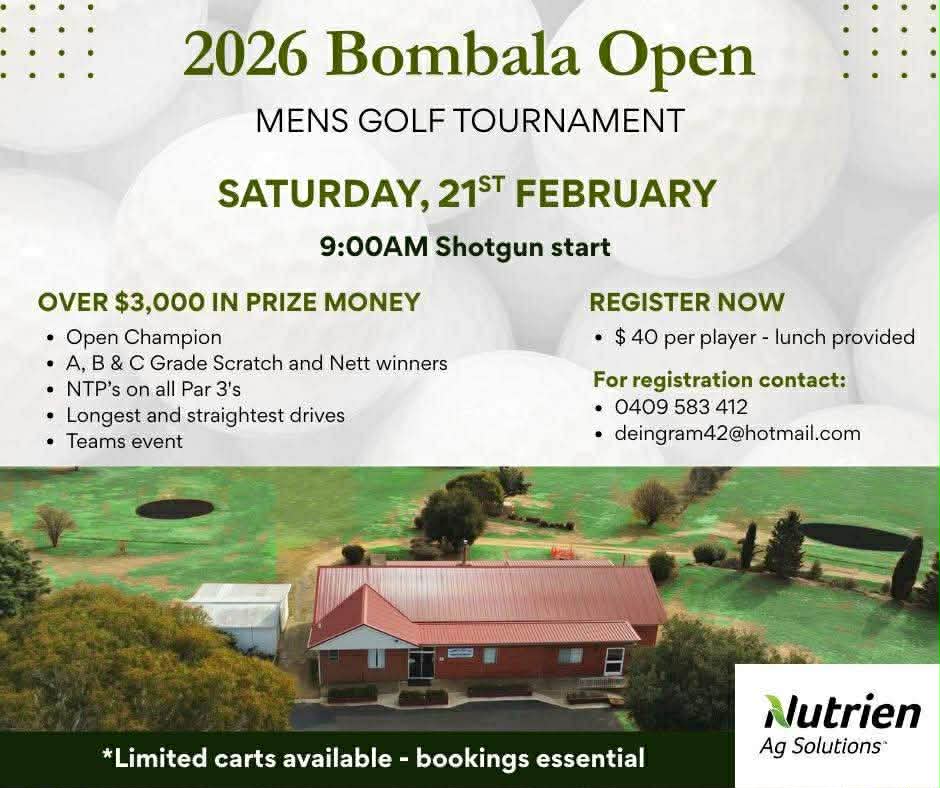 4. Cooma GC has offered their carts, but we need to transport them to Coolamatong on March 16-17 (and return after the event).
